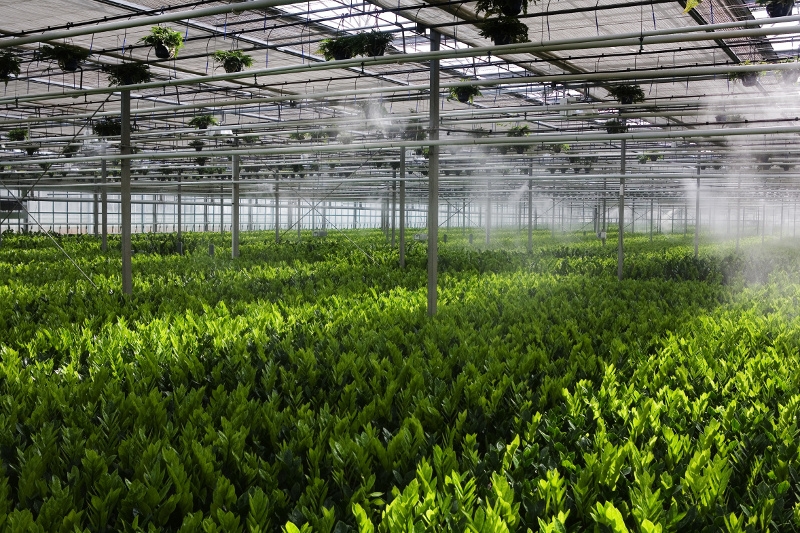 El sistema por nebulización producte una niebla artificial que humedece y refrigera el medio ambiente del hinvernadero.