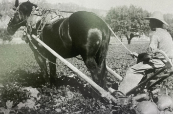 En la época álgida de las "Mataró potatoes" Josep Maria Sabater diseña y fabrica una máquina para arrancar patatas con tracción animal.