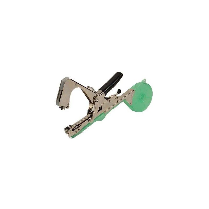 La atadora de plantas, con una sola mano mediante la aplicación de una grapa a un lazo de cinta.