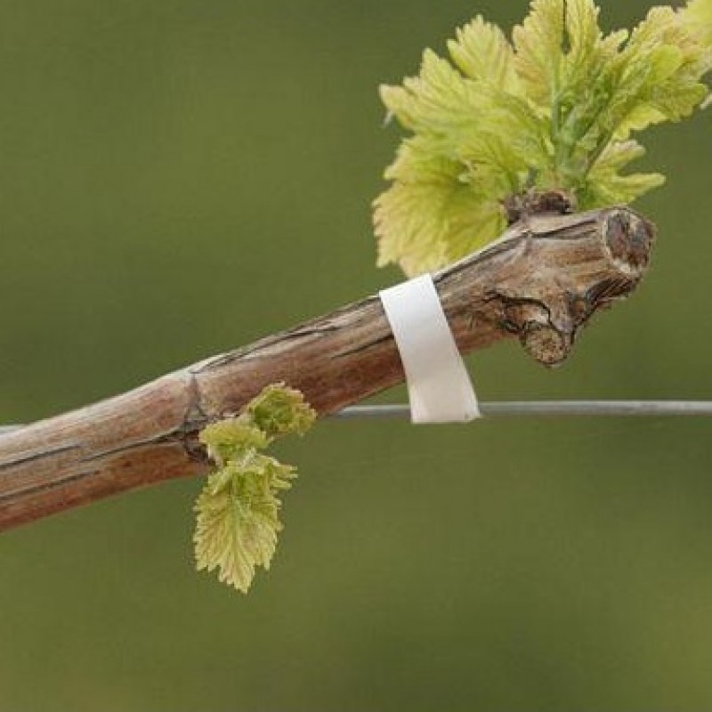Para fijar a un tutor o soporte que sirve para mantener erectas las plantas jóvenes. La planta se ata a la estaca mediante una cinta o goma especialmente diseñada para que no dañe sus tejidos.
