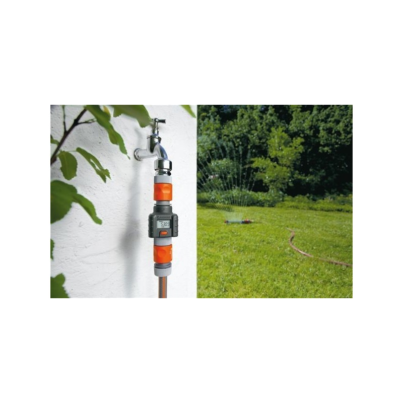 Conexión al macho para grifos o bien al conector para manguera, en un simple clic. Pila incluida