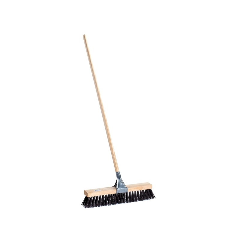 Cepillo barrendero de 500mm en color negro con mango de madera de 1,30 metros. Ideal para el barrido eficiente de grandes superficies en exteriores e interiores agrícolas e industriales.
