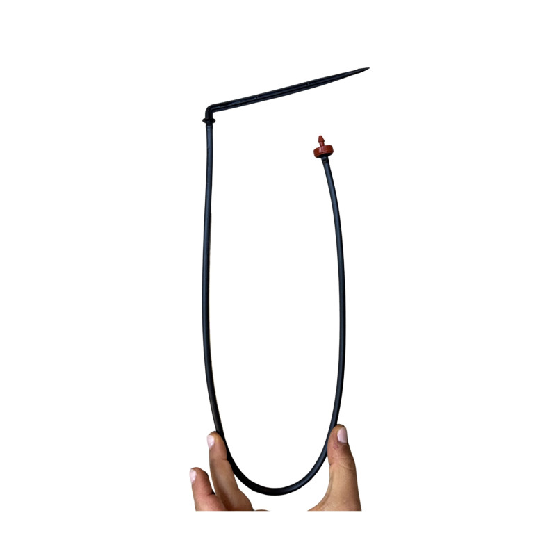 Conjunto hidropónico PCJ CNL 2 l/h con mini tubo de 60 cm, autocompensado y antidrenante, y piqueta de soporte de 45° acolchada. Solución PREMIUM para riego hidropónico de precisión en huertos y cultivos profesionales.