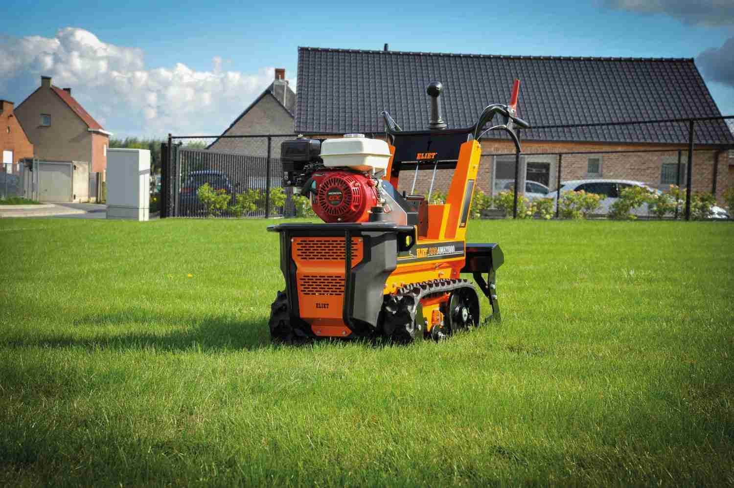 Ofrece un agarre óptimo gracias a sus orugas, que proporcionan una gran superficie de contacto y máxima tracción, especialmente en terrenos húmedos. Su propulsión hidrostática permite ajustar la velocidad de cada oruga, facilitando curvas suaves e incluso giros sobre su propio eje, lo que garantiza maniobrabilidad en cualquier tipo de césped.