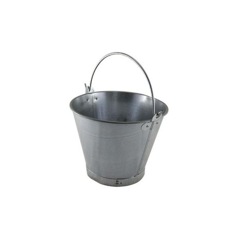 Cubo metálico galvanizado de forma cónica y 10 litros de capacidad. Con asa lisa para un agarre fácil y cómodo.