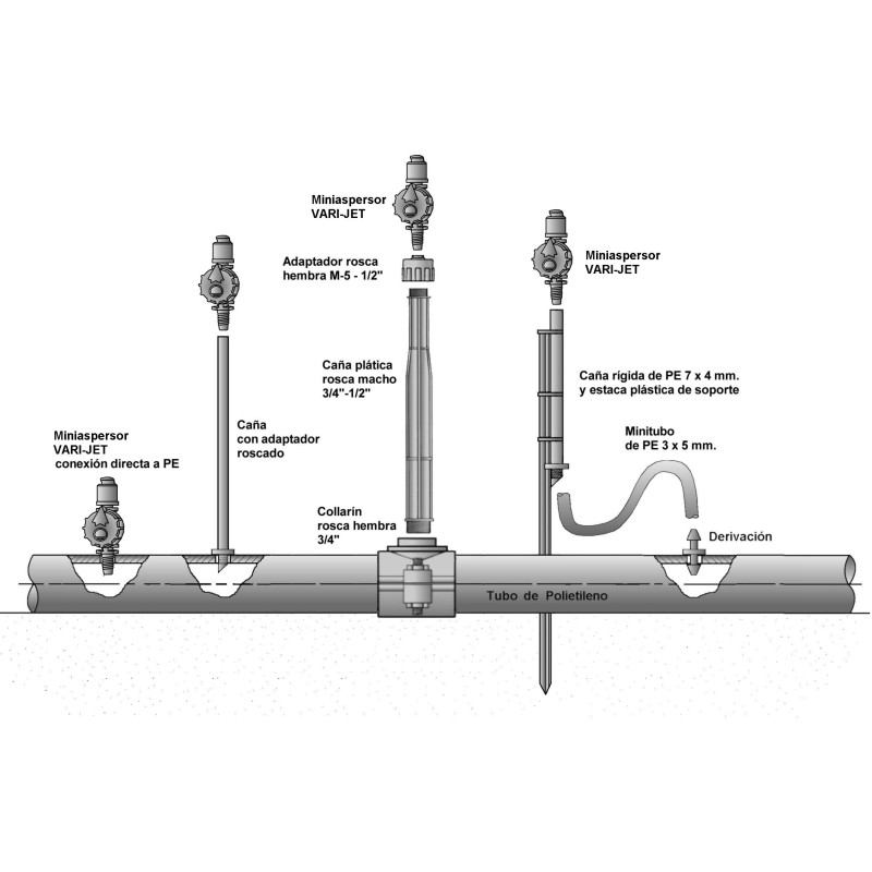 Microdifusor VARI-JET 360º x 18 orificios, dispersión 0.5m, caudal: 80 l/h a 1.5 Kg/cm2.