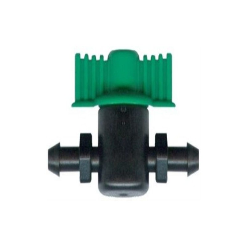 Minivàlvula conexión a minitubo 4,5mm x 4,5mm. Para la graduación del caudal y del alcance de los emisores. Simplemente enroscar la tobera.