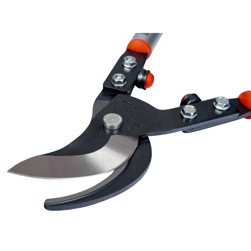 Sus mangos tubulares de aluminio de 800 mm ofrecen un gran alcance y facilitan el trabajo en altura o en ramas difíciles de alcanzar. Además, su diseño equilibrado con amortiguadores de goma reduce el impacto y la fatiga en músculos y articulaciones durante largas jornadas de trabajo.