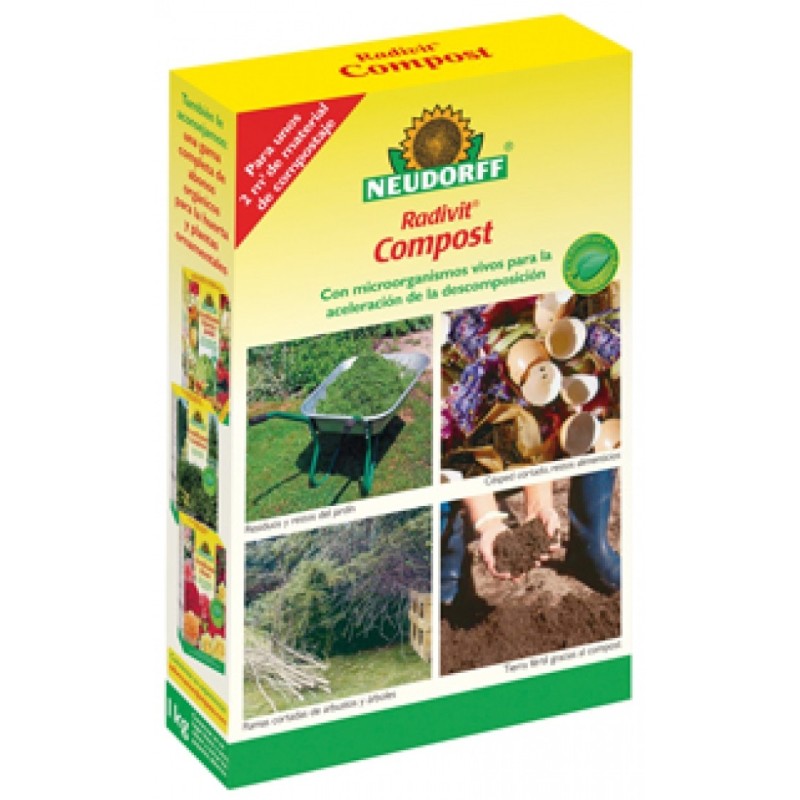 Accelerador del procés de compostatge amb microorganismes, dissenyat per estimular la descomposició de restes vegetals de l'hort en un excel · lent adob orgànic (compost), amb alt contingut nutritiu.