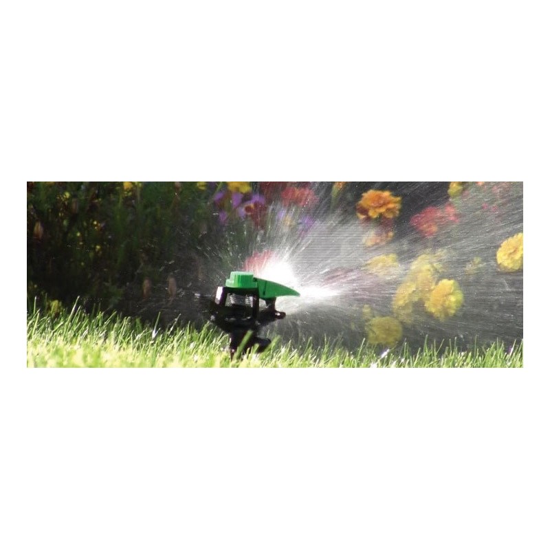 La cobertura d'aigua fins a 24 metres de radi, construcció de plàstic resistent, palanques per cobertura total o parcial, esfera deflector per ajustar la distància, cargol difusor per ajustar el una cobertura d'aigua uniforme, aspersor amb connexió NPT a la base de 1/2 polzada.