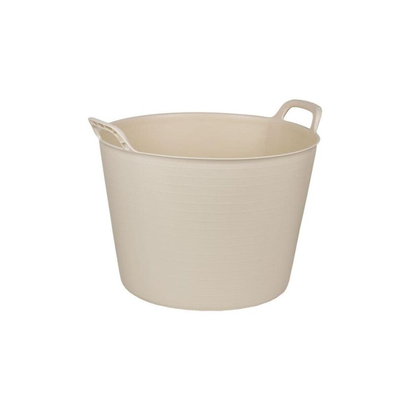 Cabàs de plàstic flexible i resistent de 42 litres de capacitat, en color ecru (beix clar). Disposa de 2 nanses extragrandes reforçades, preparades per treballar amb guants i per transportar la càrrega còmodament. Fabricat en polietilè reciclat no tòxic, molt resistent i de gran durabilitat. Dimensions aproximades: Ø 43 cm x 34 cm d'alçada. Apilable per facilitar l'emmagatzematge. Ideal per a agricultura, jardineria, ramaderia, recol·lecció de fruits, construcció i ús domèstic en general.