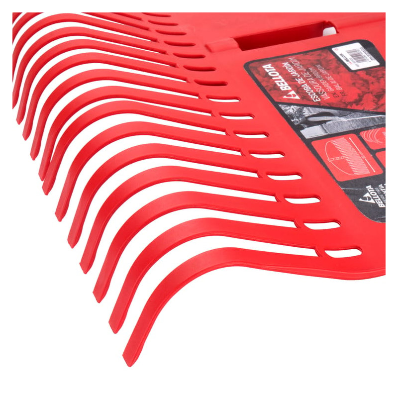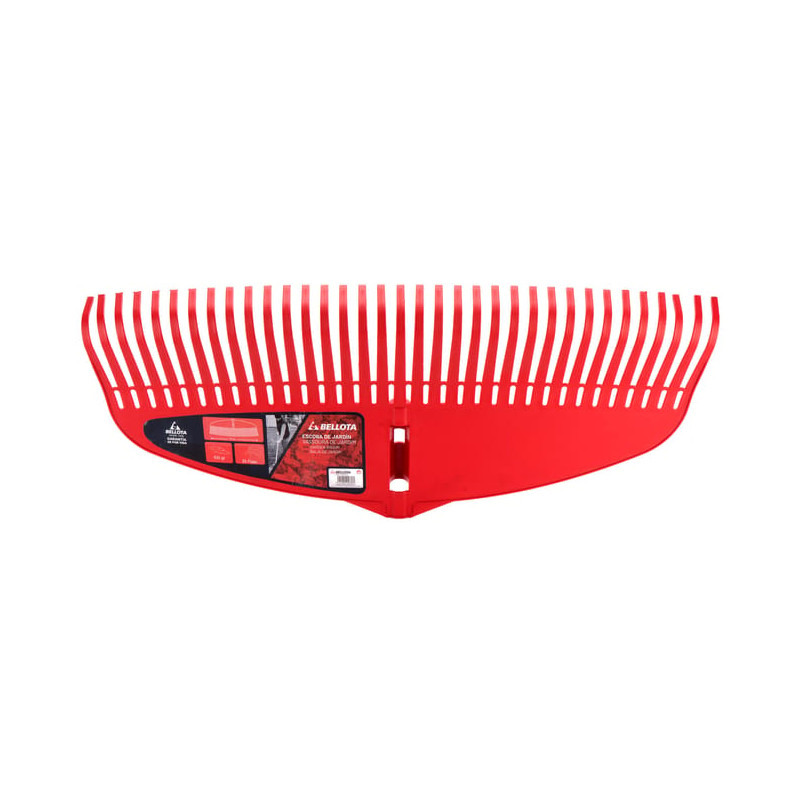 Escombra de gespa BELLOTA de gran amplada, sense mànec, amb 35 pues planes de plàstic d'alta resistència. Gràcies a la seva amplada de treball superior, permet cobrir més superfície en menys passades, fent la feina més ràpida i eficient. Lleugera i resistent, és ideal per netejar el césped sense danyar-lo, recollint fulles seques, restes de gespa tallada, branques i altres residus de jardí. Les seves pues planes de polipropilè flexible garanteixen un treball net i suau sobre el césped. Compatible amb mànecs de fusta FSC o d'alumini (no inclòs).