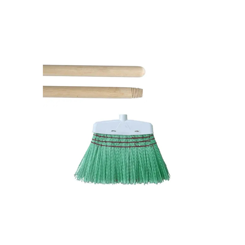 Escombra via-plast de cerdes plàstiques verdes amb mànec de fusta. Ideal per a la neteja d'exteriors, patis, camins i superfícies agrícoles.