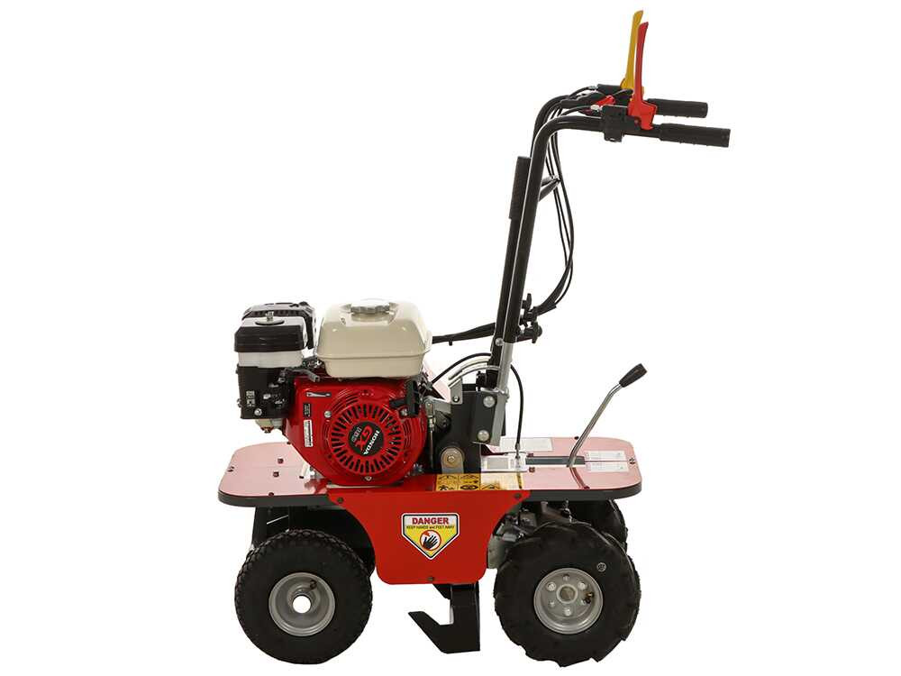 Tallatepes de gasolina amb motor Honda per a ús professional en petits i mitjans jardins. Permet tallar de manera senzilla la gespa en tepes per al seu emmegatzematge i transport.
