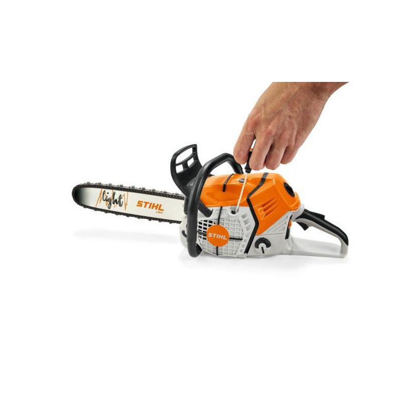 La motoserra de joguina STIHL funciona amb piles i té l'aspecte i el tacte de la innovadora STIHL MS 500. Reprodueix de forma lúdica moltes de les característiques de la serra mecànica original, des de la cadena mòbil intercanviable fins al nou disseny d'espasa, passant pel indicador de funcionament LED. I també s'ha pensat en els pares: perquè la serra mecànica de joguina no es converteixi en una molèstia, el so es pot ajustar mitjançant un regulador de volum.