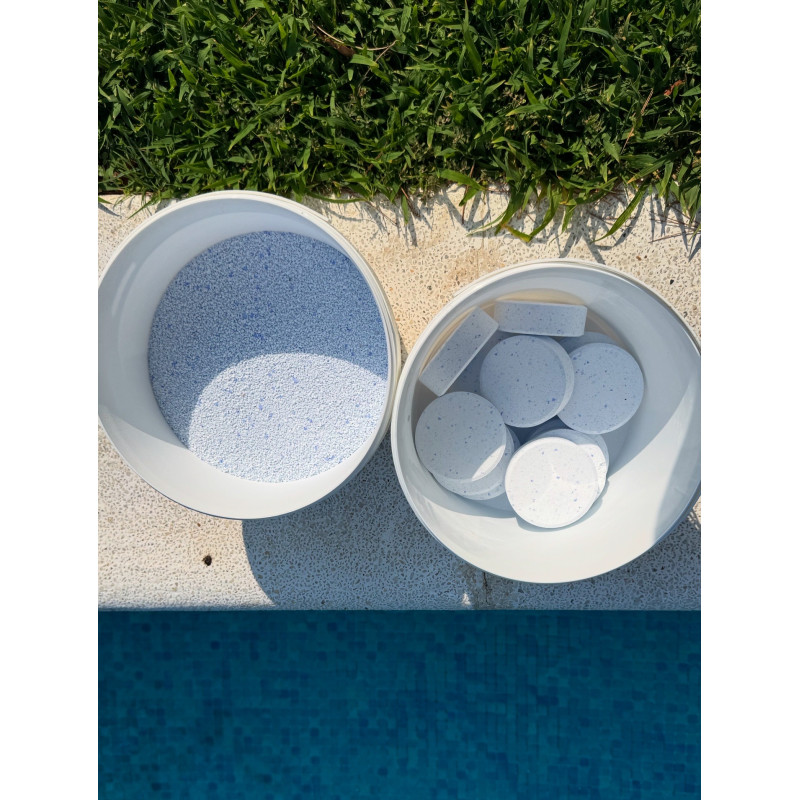 Desinfectant en format de pastilla compacta de 200 grams amb un 90% de clor actiu, de dissolució lenta, ideal per al manteniment continu i regular de l'aigua de piscines. La seva acció prolongada allibera el clor de forma gradual i constant, garantint uns nivells de desinfecció estables durant dies. Elimina bacteris, algues i microorganismes, mantenint l'aigua neta, segura i en perfectes condicions higièniques. De fàcil ús, s'introdueix directament al skimmer, dosificador flotant o clorador automàtic, sense necessitat de manipulació freqüent. Presentació en pot de 5 kg. Ideal tant per a ús domèstic com professional.